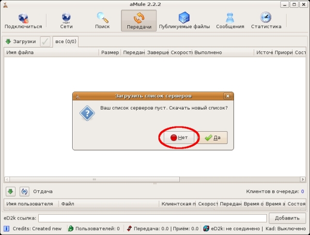 3. При вопросе «Ваш список серверов пуст. Скачать новый список?» выбираем вариант «Нет».