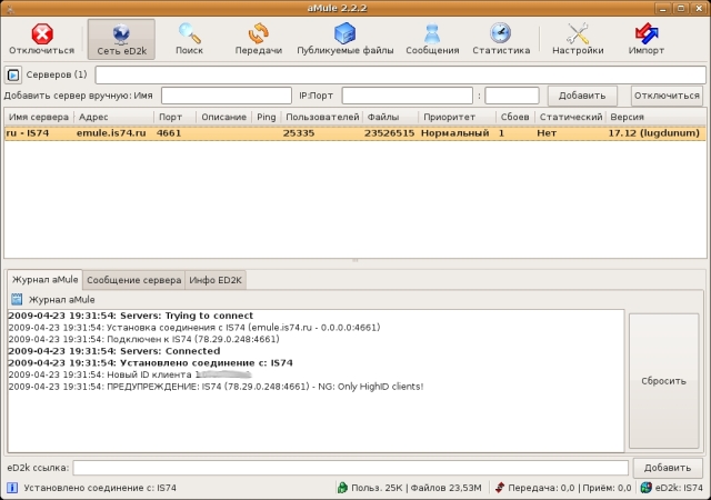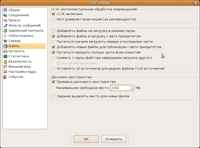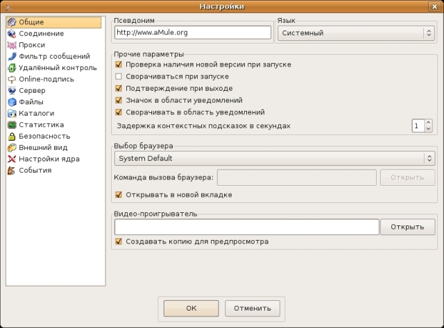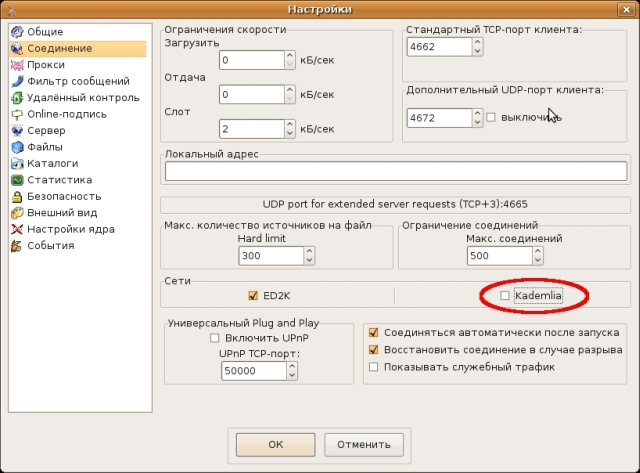 Настройка программы aMule в операционной системе Linux